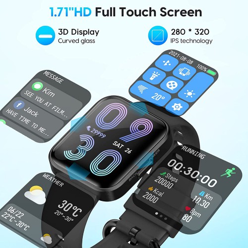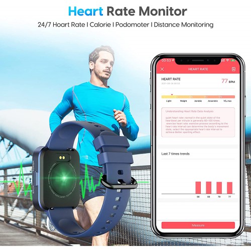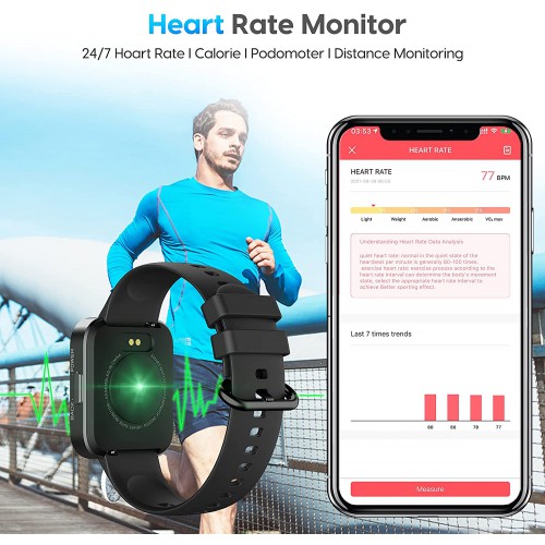 Smart Watch, AMOYEE Fitness Watch with Heart Rate, IP68 Waterproof Activity Tracker, Fitness Tracker Sleep Monitoring Blood Oxygen, Smartwatch Compatible with iOS and Android for Men and Women