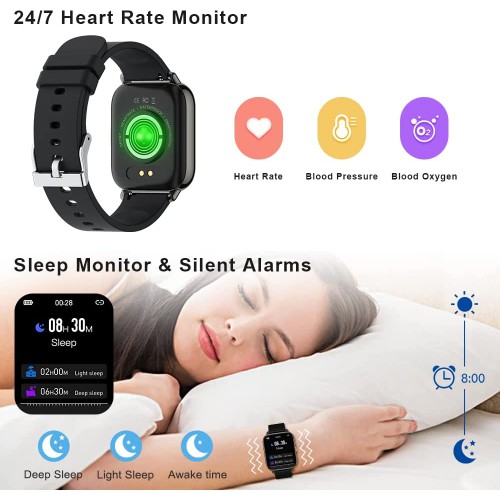 Smart Watch for Men Women 2021, 1.69'' HD Touch Screen Fitness Tracker Smartwatch for Android iOS, Fitness Watches Sleep Heart Rate Monitor, IP68 Waterproof Pedometer Activity Tracker 24 Sports Modes