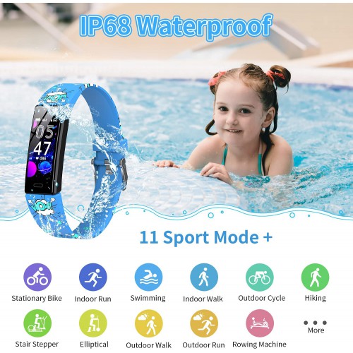 YEGKGO Fitness Tracker for Kids Girls Boys Teens, IP68 Waterproof Activity Tracker with Pedometer Calorie Counter, Heart Rate & Sleep Monitor Fitness Watch, Call & SMS Reminder, Gift for Kids
